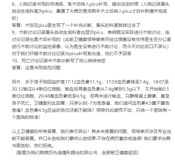 在明确表示:病历不存在篡改和伪造, 作为 有督察组在的卫健委官方都告知的前提下,回头就在网上“ 义正言辞 ”,你们不是想要结果么,那又在跳什么呢?随后LX爸爸罗列了12条异议,有异议为什么不通过合理途径去协商,发在网上算什么?很显然背后有“高人”在指点: